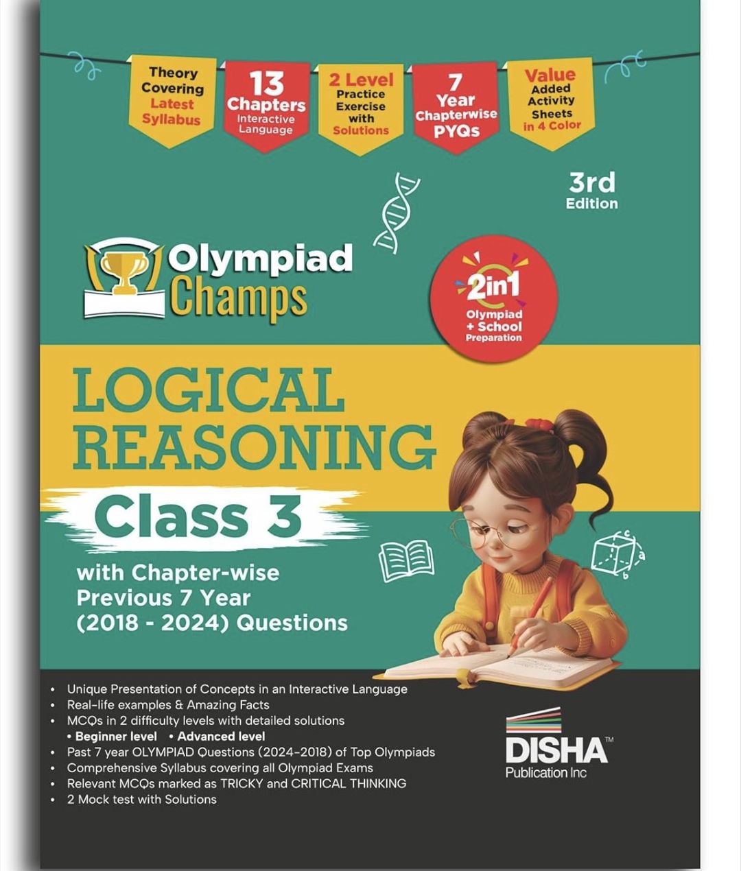 Title :Disha Olympiad Champs Logical Reasoning Class 3 with Chapter-wise Previous 7 Year (2018 - 2024) Questions 3rd Edition | Complete Prep Guide with Theory, PYQs, Past & Practice Exercise