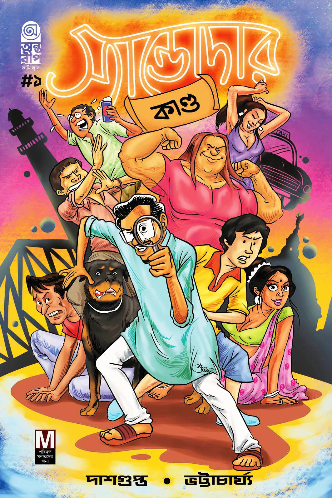 সতর্কীকরণ: এই গোয়েন্দা গল্পে হাসতে হাসতে খুন হয়ে যাওয়ার সম্ভাবনা প্রবল! বাংলা সাহিত্যে গোয়েন্দা, দাদা-কাকা মানেই একরাশ শৈশব স্মৃতি, কোমল কিশোরপাঠ। কিন্তু এবার বদলাতে চলেছে সেই চেনা ছক। 'স্যান্ডোদার কাণ্ড'— সম্পূর্ণ নতুন ধরণের একটি গোয়েন্দা-চরিত্র, কঠোরভাবে প্রাপ্তমনস্ক। এই বইয়ের কাহিনিগুলি প্রাপ্তমনস্কদের জন্য রচিত কমেডি ডিটেকটিভ অ্যাডভেঞ্চার। রয়েছে নিখাদ গোয়েন্দাগিরির সঙ্গে স্যান্ডোদার হরেকরকম অদ্ভুত আচরণ, খিস্তির পশরা আর খিল্লির ফোয়ারা, আর বাঙালির বহু পছন্দের অপ্রকাশিত কিন্তু চিরচেনা উপাদান— চাপা যৌনতা। অন্তরীপ কমিকস-এর এই প্রযোজনা, শমীক দাশগুপ্ত রচিত, ভট্টবাবুর পেজ-খ্যাত শুভম ভট্টাচার্য্য অঙ্কিত, রাজা ভট্টাচার্য অনূদিত— আপনাকে হাসাবে, ভাবাবে, আবার কিম্ভুত কাণ্ডে চমকে দেবে। গ্যারান্টি দিচ্ছি— শেষ পর্যন্ত আপনি হাসতেই থাকবেন। আর যদি সত্যিই কেউ হাসতে হাসতে খুন হয়ে যায়? স্যান্ডোদা তো আছেই! স্যান্ডোদার কাণ্ড কাহিনি ও চিত্রনাট্য: শমীক দাশগুপ্ত অনুবাদ: রাজা ভট্টাচার্য শিল্পী ও মূল প্রচ্ছদ: শুভম ভট্টাচার্য